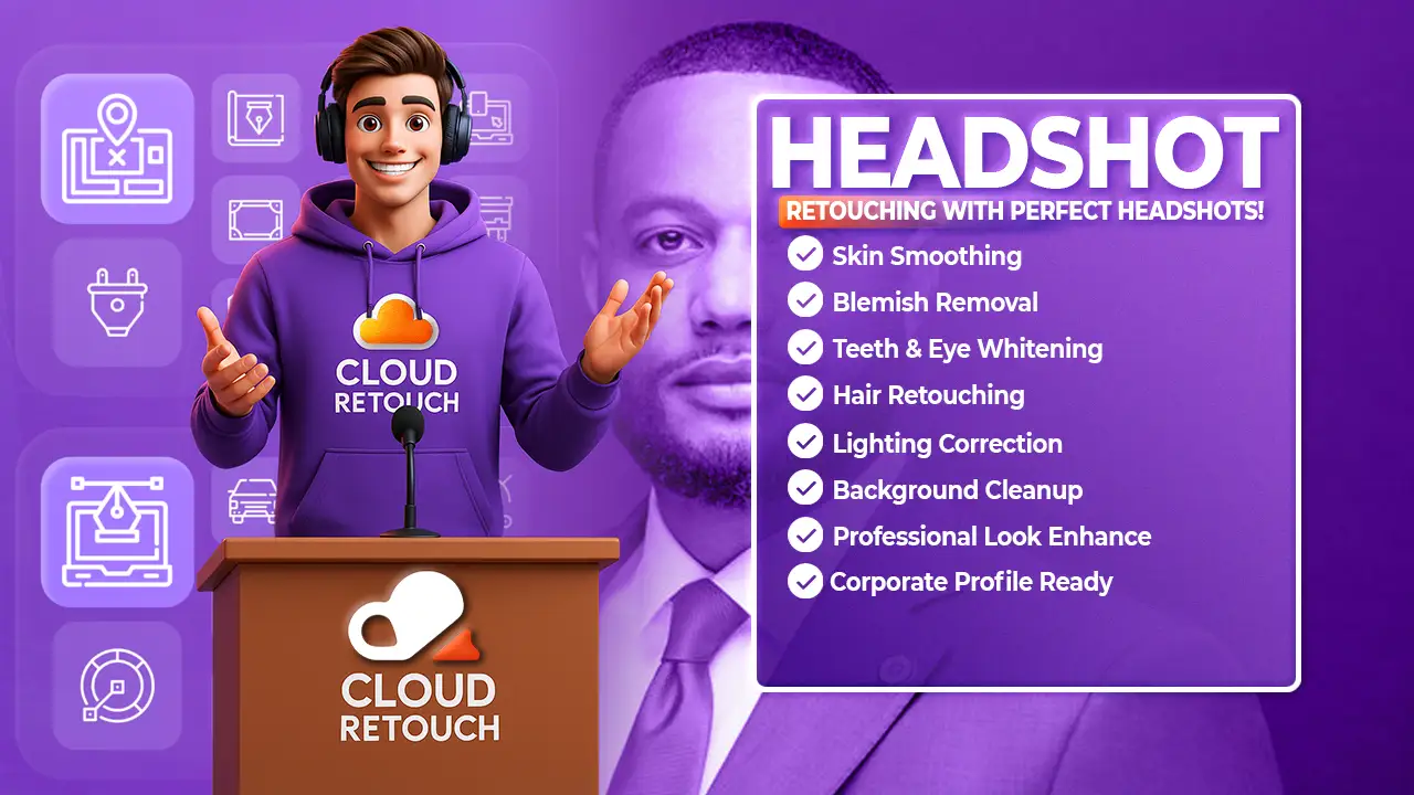 Get a professional headshot retouching service — skin smoothing, blemish removal, background cleanup, and color grading.